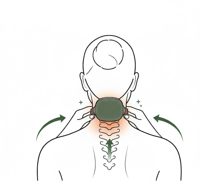 Design Ergonomique : La sangle de maintien en cuir (ajustable) assure que l'appareil reste parfaitement en place derrière la nuque sans glisser, vous laissant les mains libres pour lire, travailler ou simplement vous relaxer.
